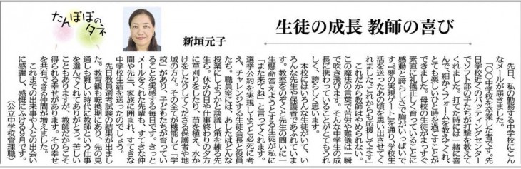 9月24日の沖縄タイムスに教頭先生エッセイが掲載されました。