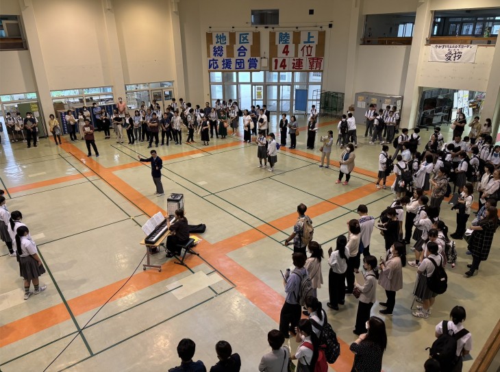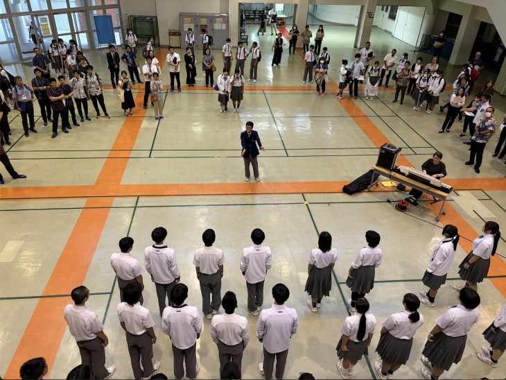 公開授業の後にはレセプションで3年3組の合唱練習を披露しました。