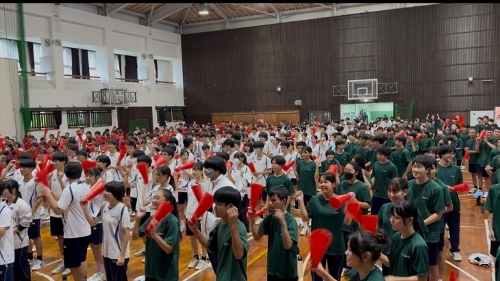 また、閉会式では宜野湾中伝統の応援団を復活させ、全校生徒で大きな声を出し、応援。体育館いっぱいに中学生のエネルギーが爆発し大きな声援が響き渡りました!